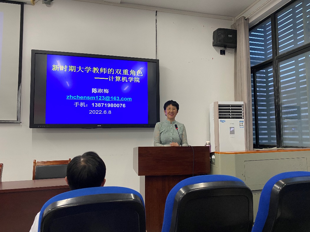6月8日晚上7:00,公司党委和省名师工作室联合邀请学校二级教授、硕导陈淑梅老师开展《新时期大学教师的双重角色》专题学术讲座,讲座由张青教授主持,学院全体教职工参加活动。
