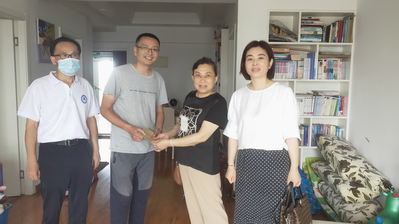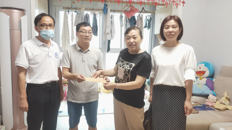 7月5日上午,在庆祝“七·一”党的生日之际,公司党委书记张青、经理何中林、副书记胡永红等一行,分别走访慰问了学院生活困难党员周贵舟、胡志锋、石建丽老师,为他们送去组织的关怀和“七一”祝福。