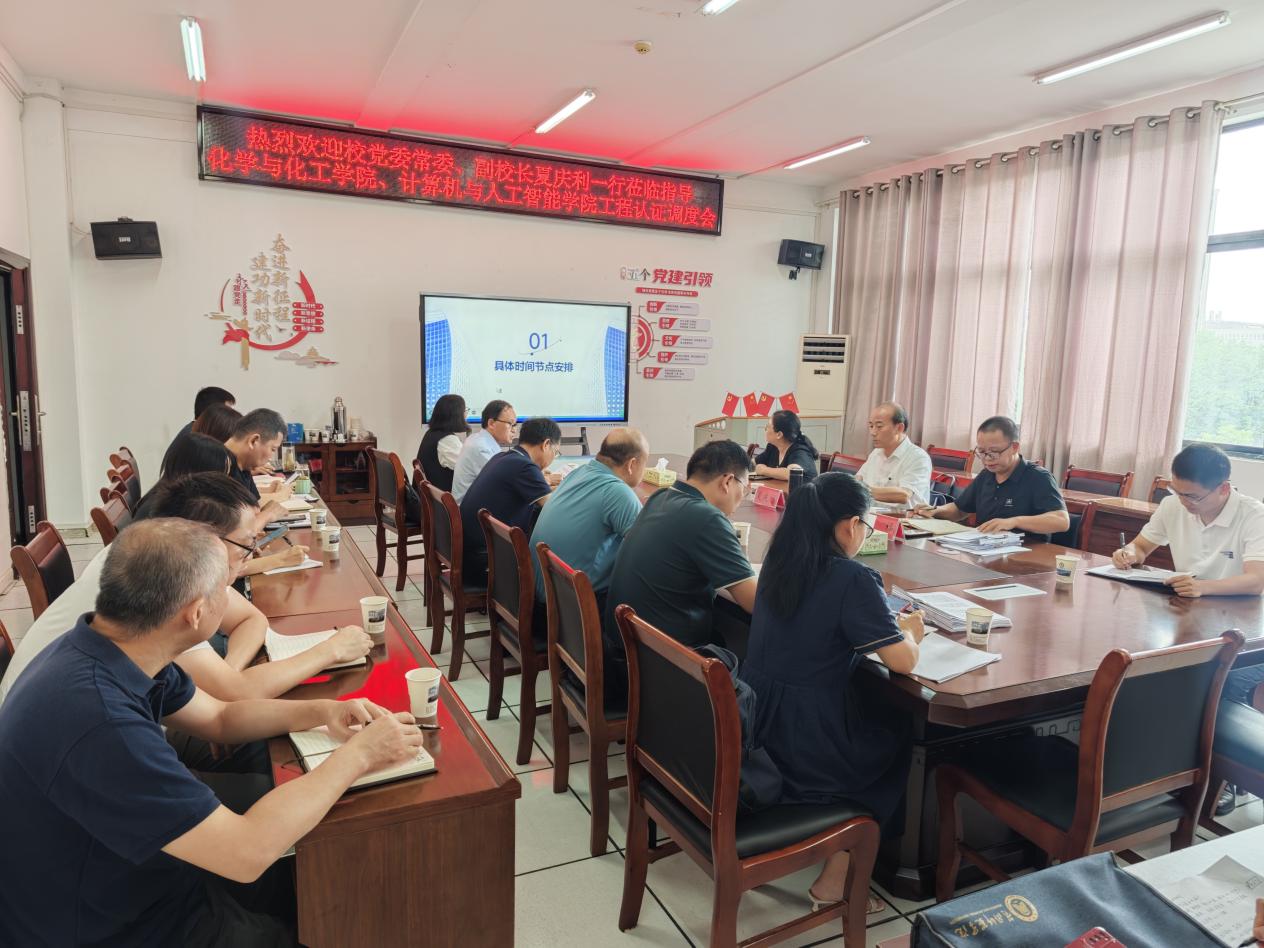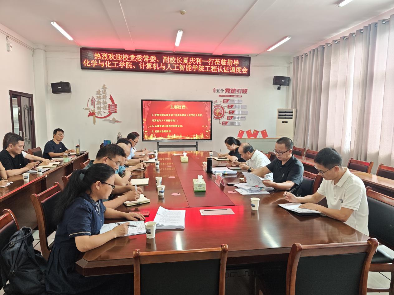 化学化工学院、计算机与人工智能学院负责人分别就拟申请认证专业相关准备工作进行了汇报。会议就现阶段面临的主要问题与下一步工作计划进行了交流。两学院均表示,将全力以赴,对照工程教育专业认证的标准和要求,系统梳理专业建设全过程、全链条,坚持持续改进,确保认证申请工作高质高效完成。
